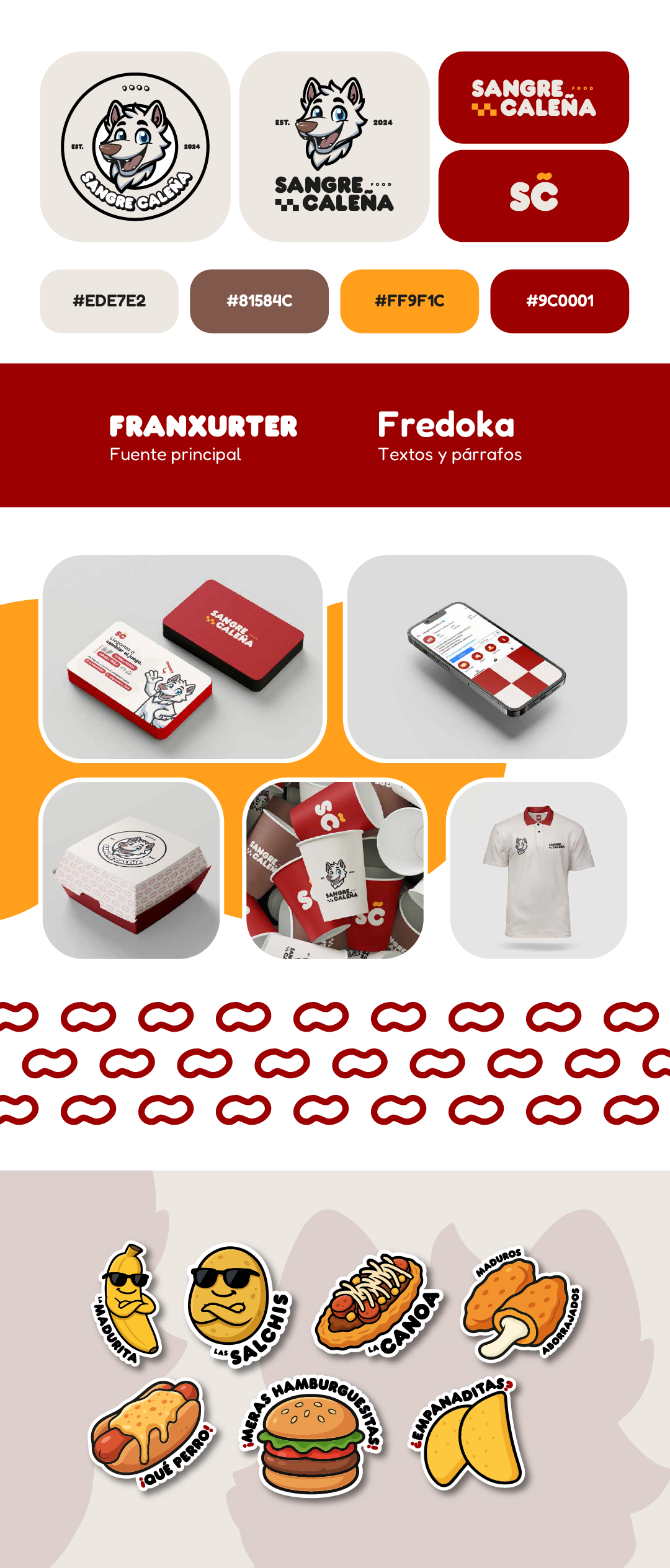 Sangre Caleña llegó con una base clara: su mascota ya estaba creada, pero necesitaban transformar esa idea en una identidad sólida y coherente. Nuestro reto fue tomar ese punto de partida y construir todo un universo visual alrededor de la marca. Desarrollamos sistema gráfico, paleta cromática, tipografías, aplicaciones en packaging, piezas digitales y merchandising, logrando una imagen fresca, urbana y llena de personalidad. El resultado fue una marca de comida rápida con carácter propio, consistente en cada punto de contacto y lista para conectar con su comunidad desde lo visual y lo emocional.
